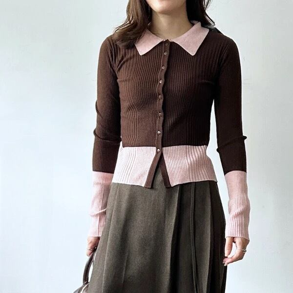 【予約】Bicolor polo knit cardigan