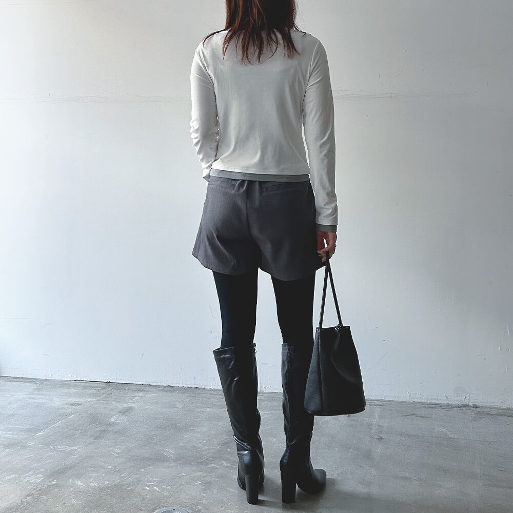 スカート見えするデザインながら、内側はショートパンツ仕様になっており、