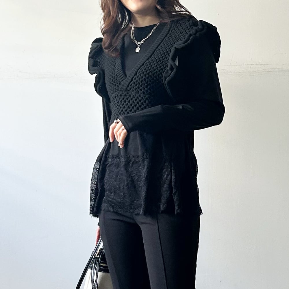 【V-neck frill knit butier】