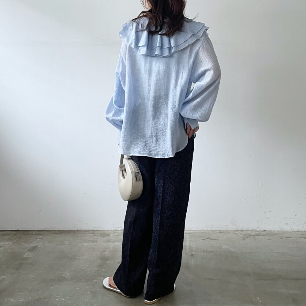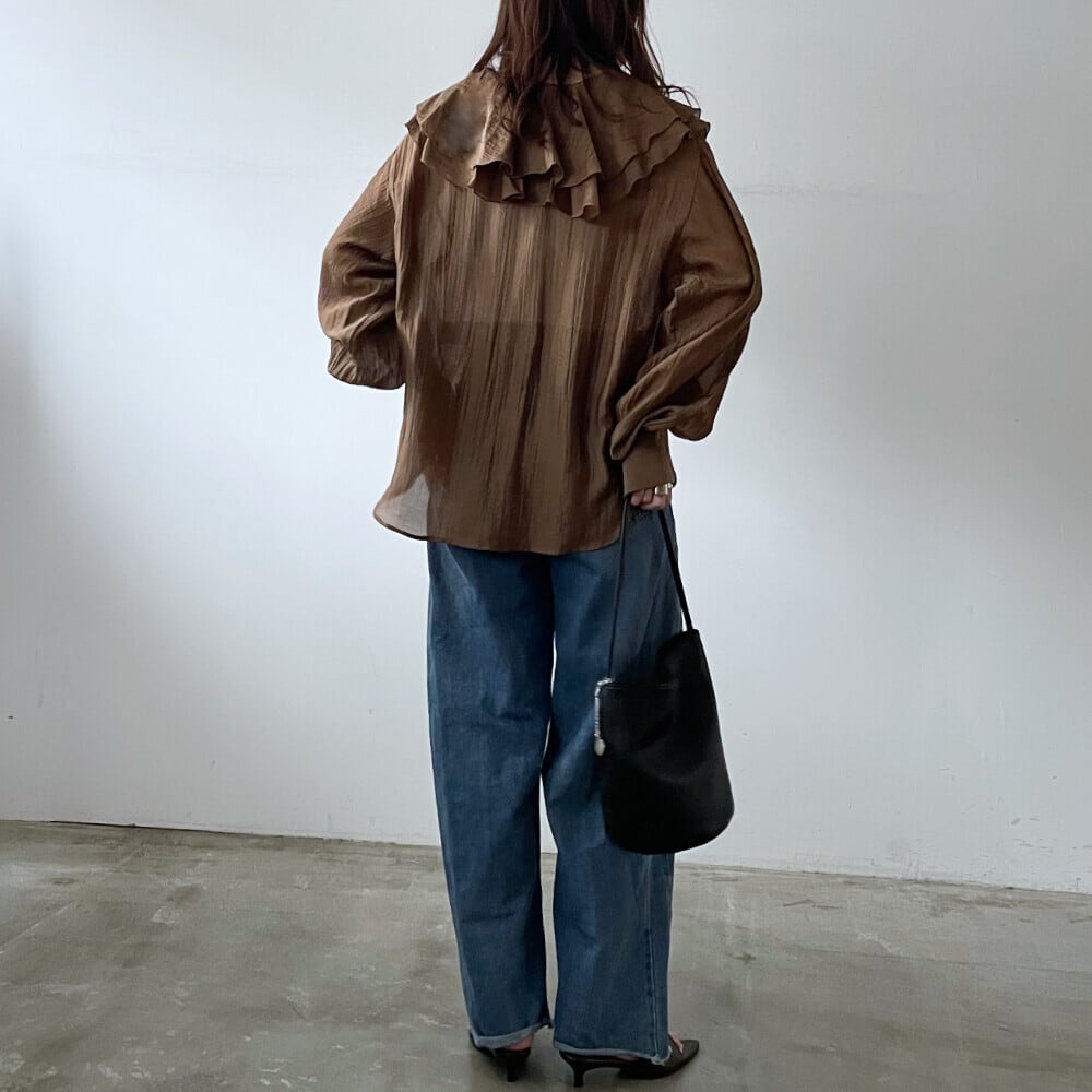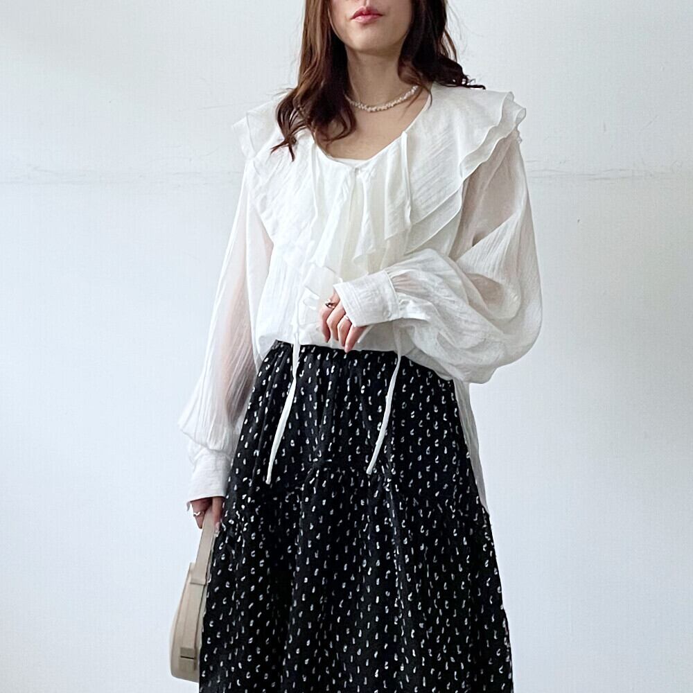【Ruffle collar sheer blouse】