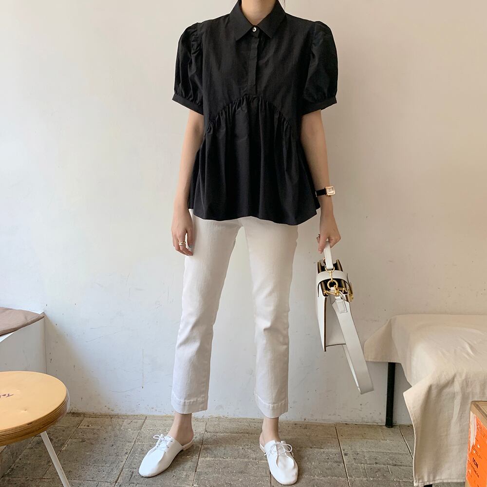 【即納】Volume sleeve flare shirts(Black)