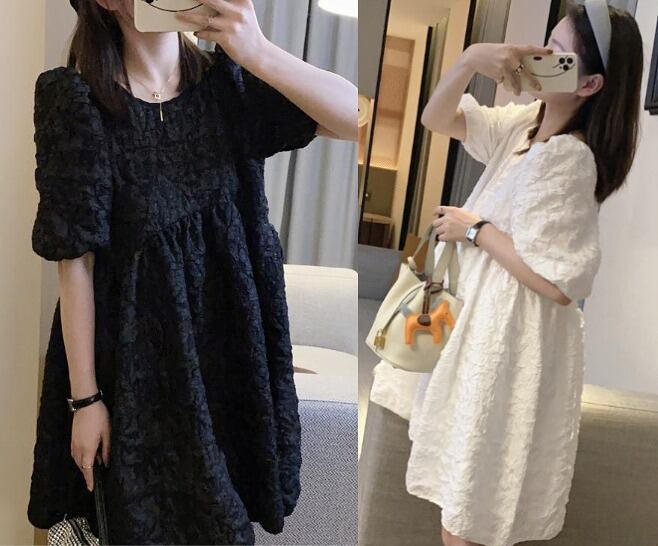 袖も程よくボリュームがあり、身頃もバスト下からフレアになっていて、着やせ効果絶大です。
