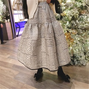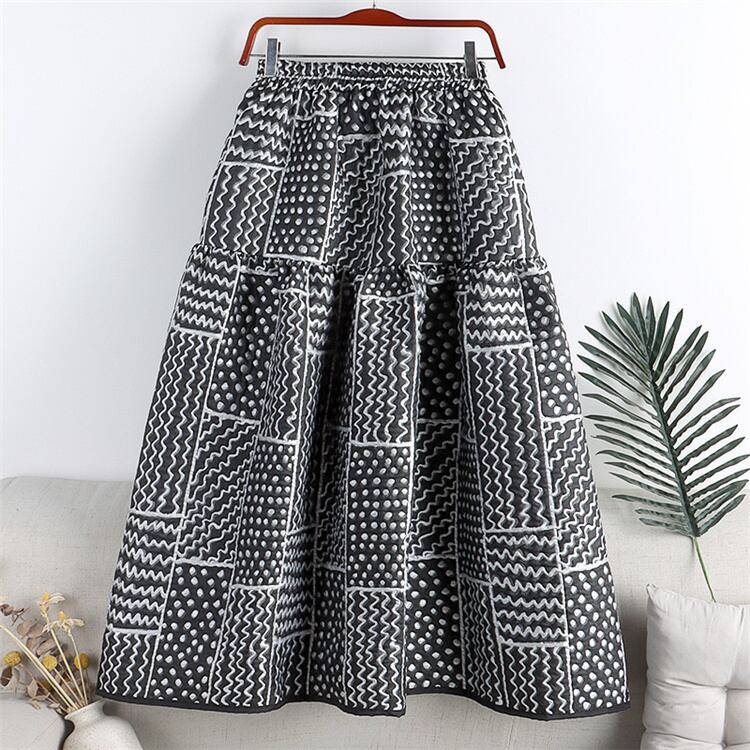 型押しの立体感のある生地感が可愛いミドル丈のスカートです。
