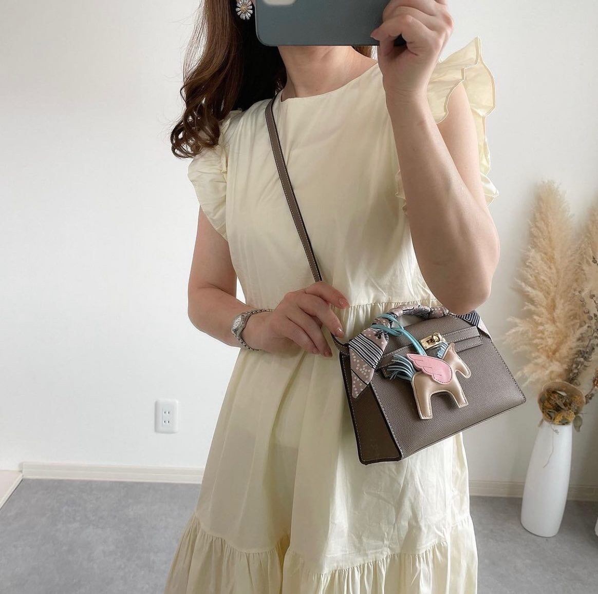 肩のフリルが可愛いフレアシルエットのワンピースです。
