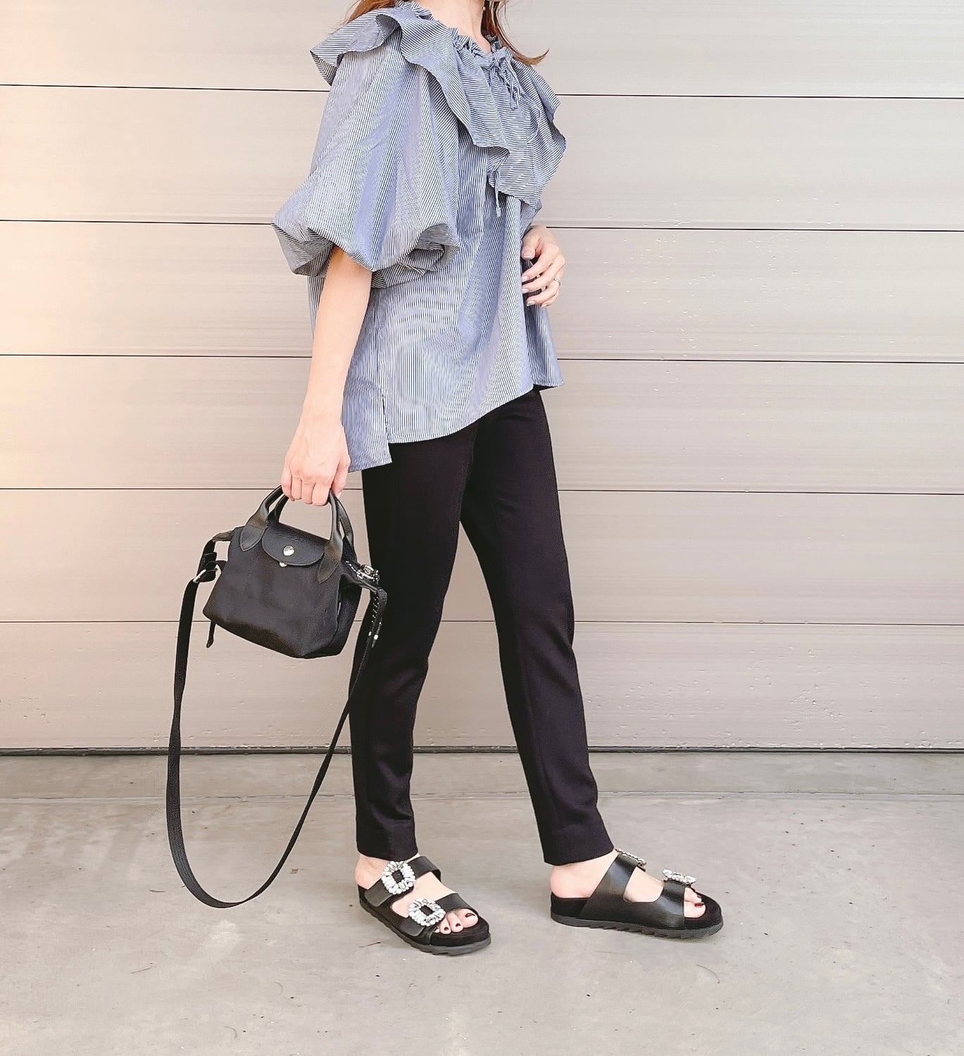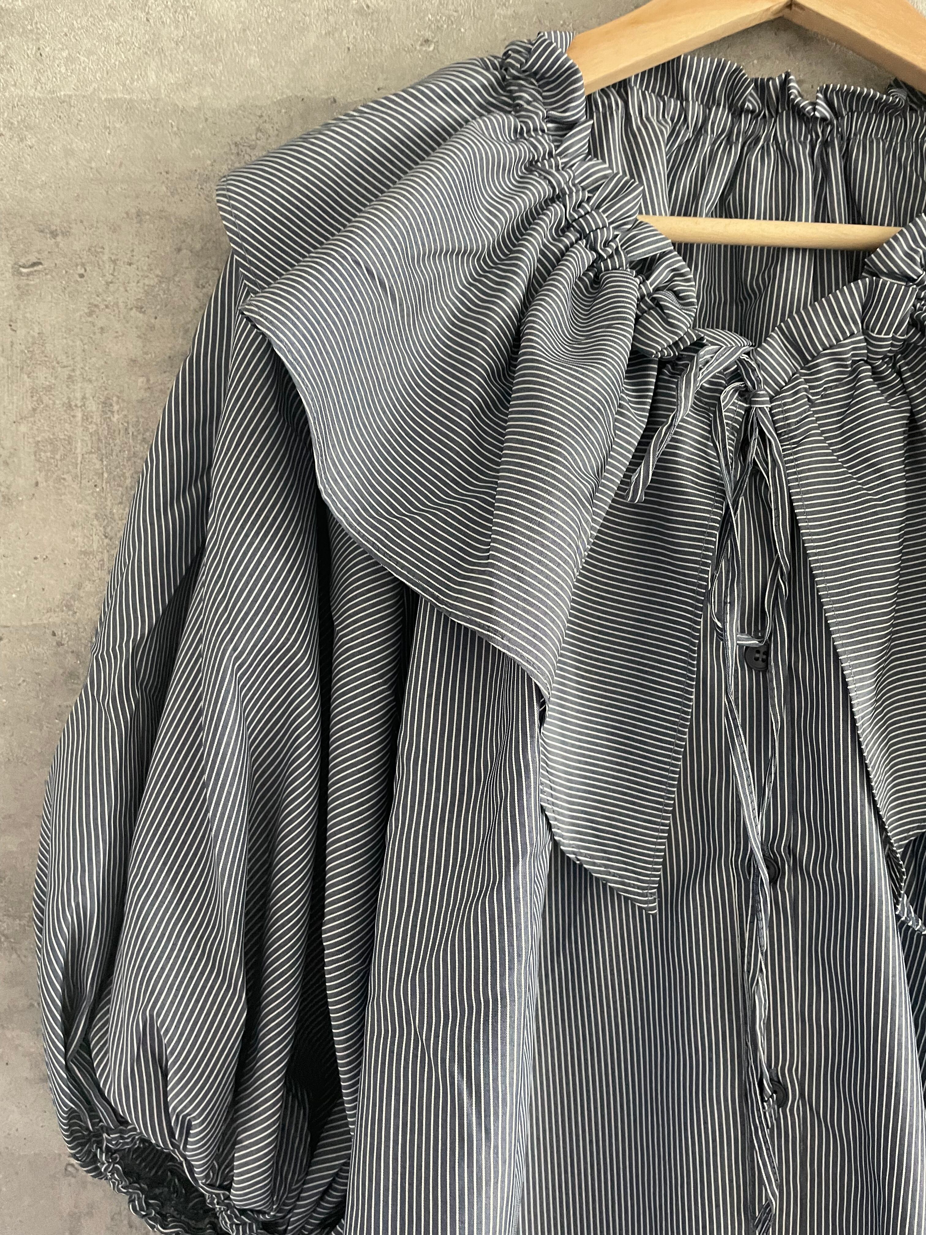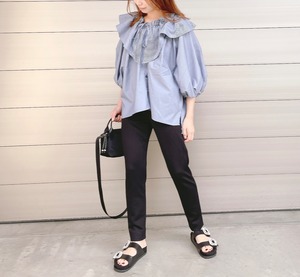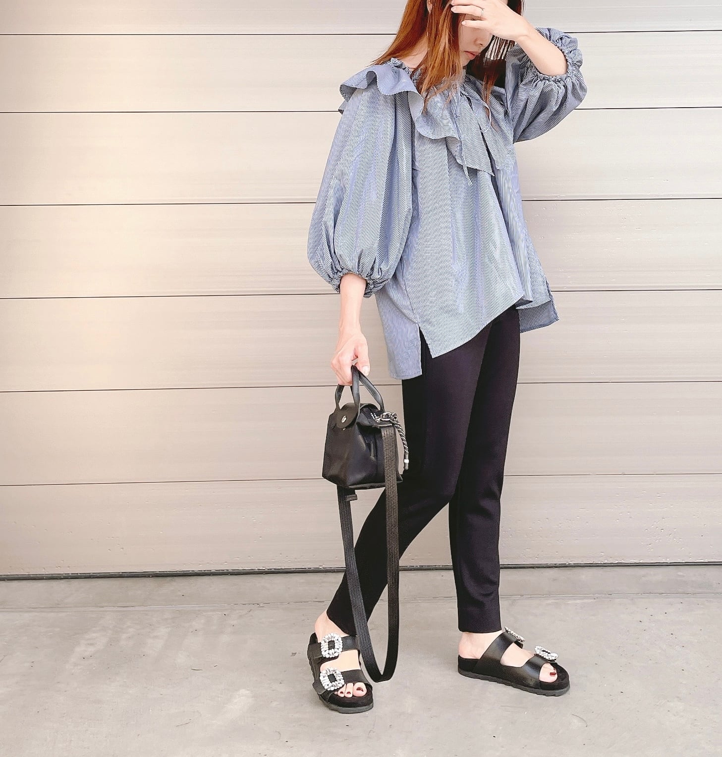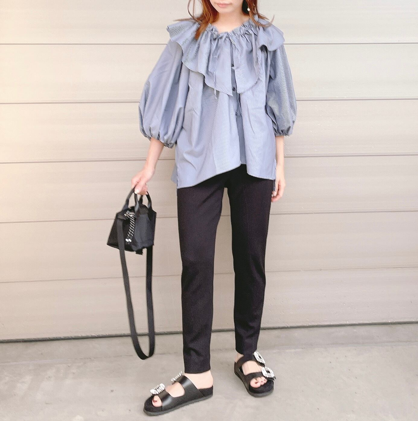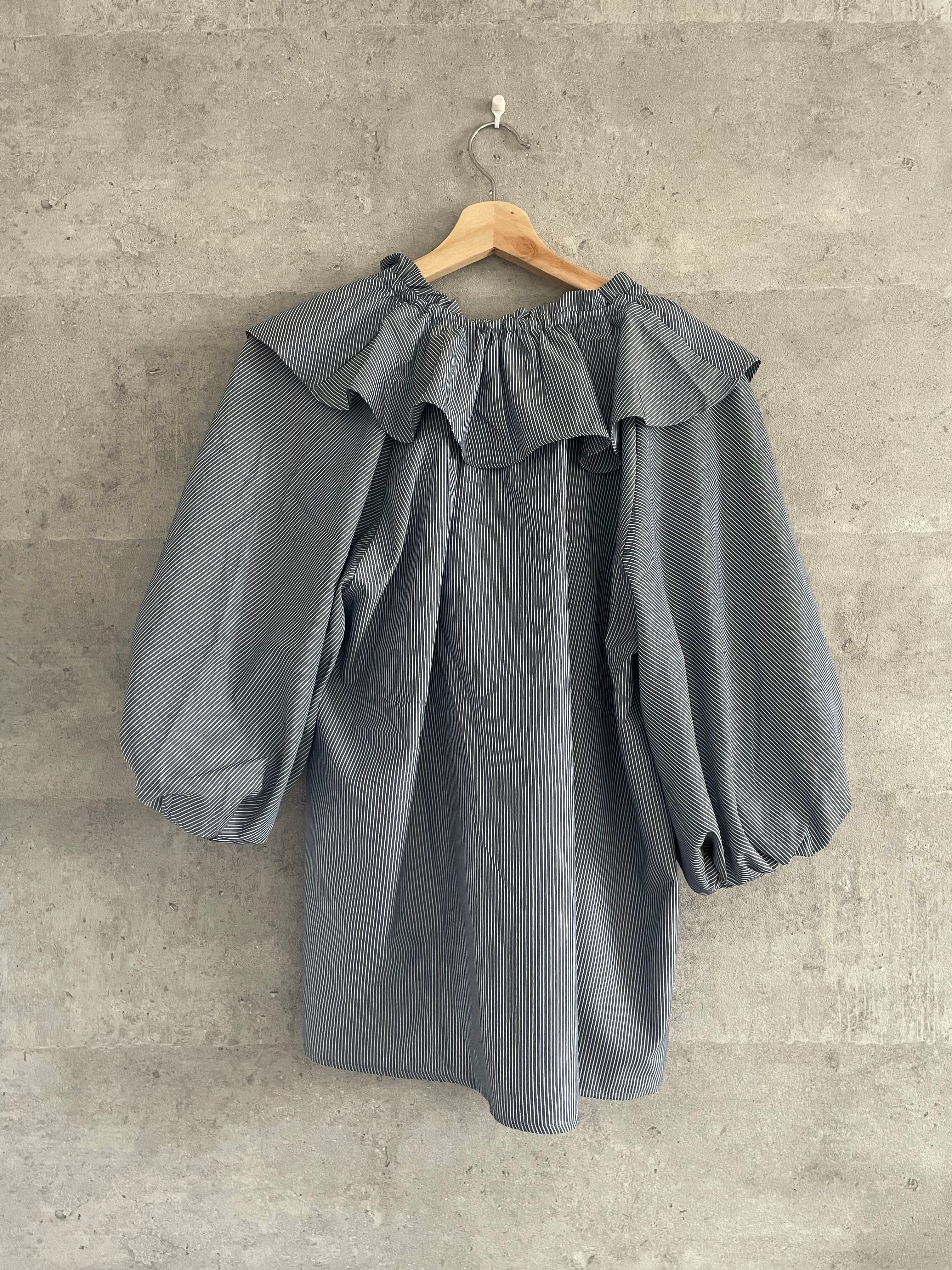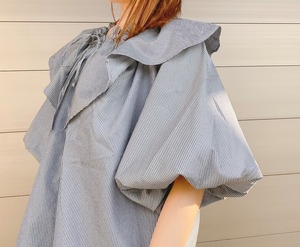 【即納】【再入荷】Stripe frill blouse(ネイビー)【ZN22080901】