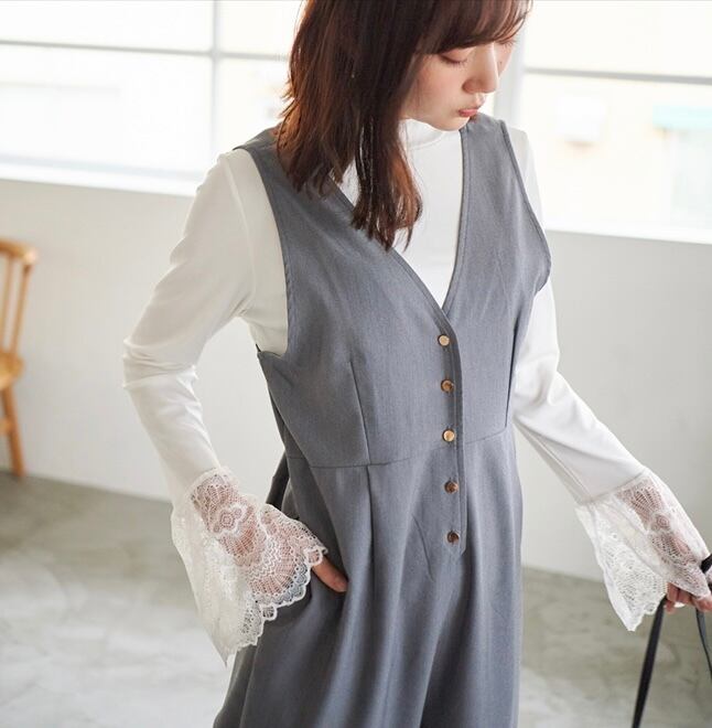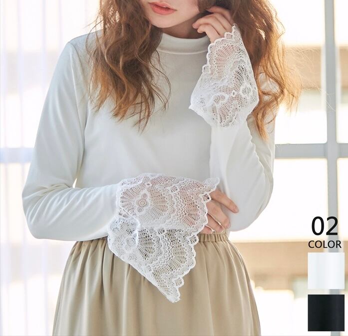 【ホワイト即納】【再入荷】Lace bellsleeve top【RM23012007】