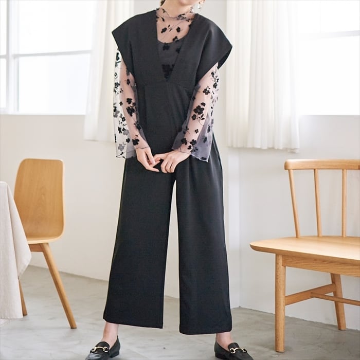 着丈:136ウエスト:80ヒップ:100裾幅:57股下:63※身幅、ウエスト、ヒップ、裾幅、袖口は1周のサイズです。