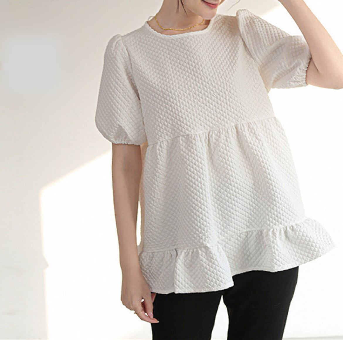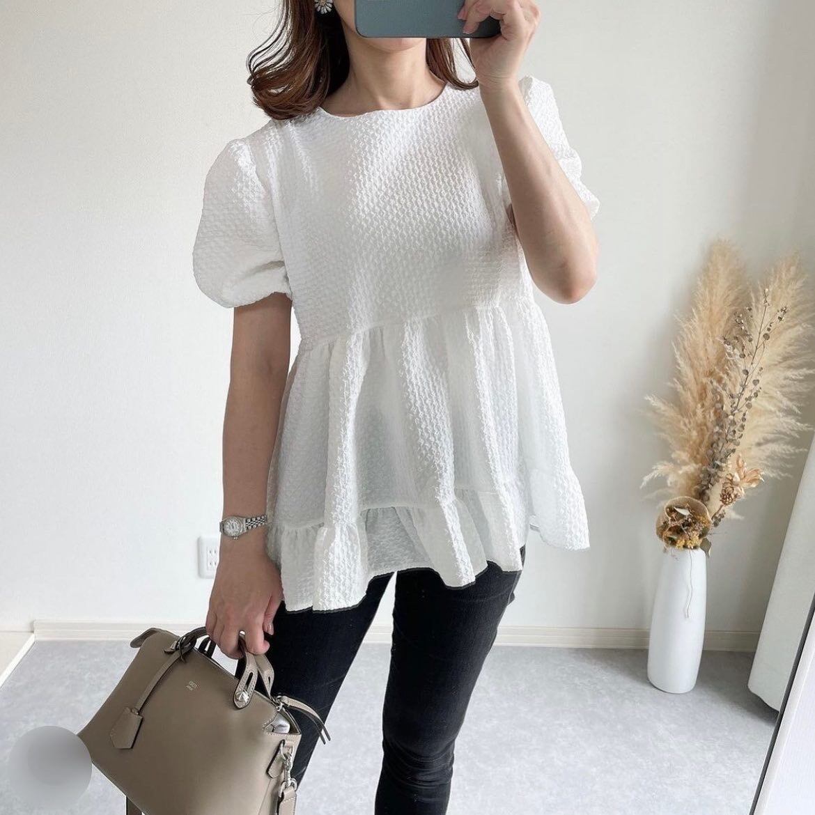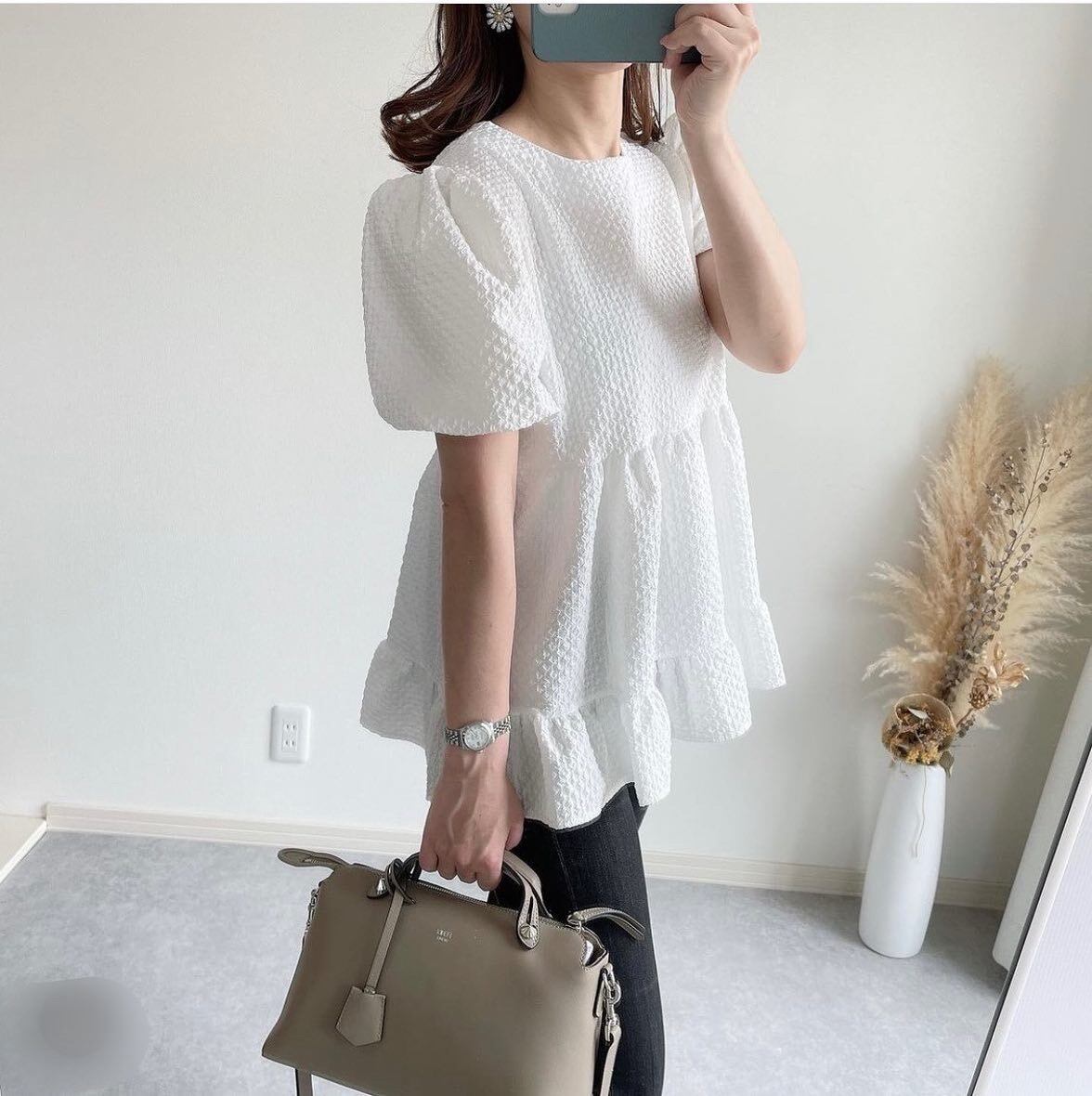 【再入荷】【即納】Back ribbon sweet puff sleeve top【PR23042101】