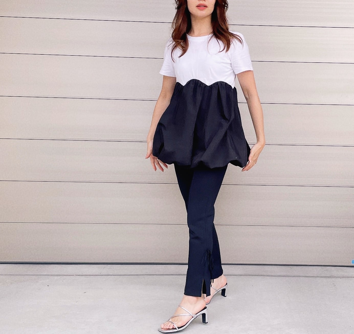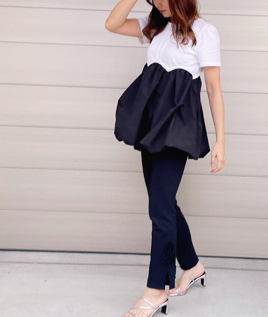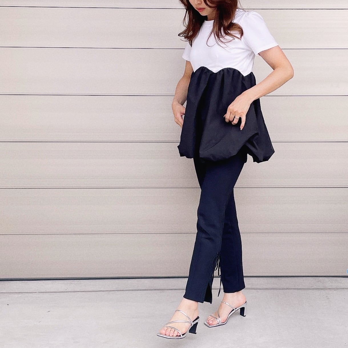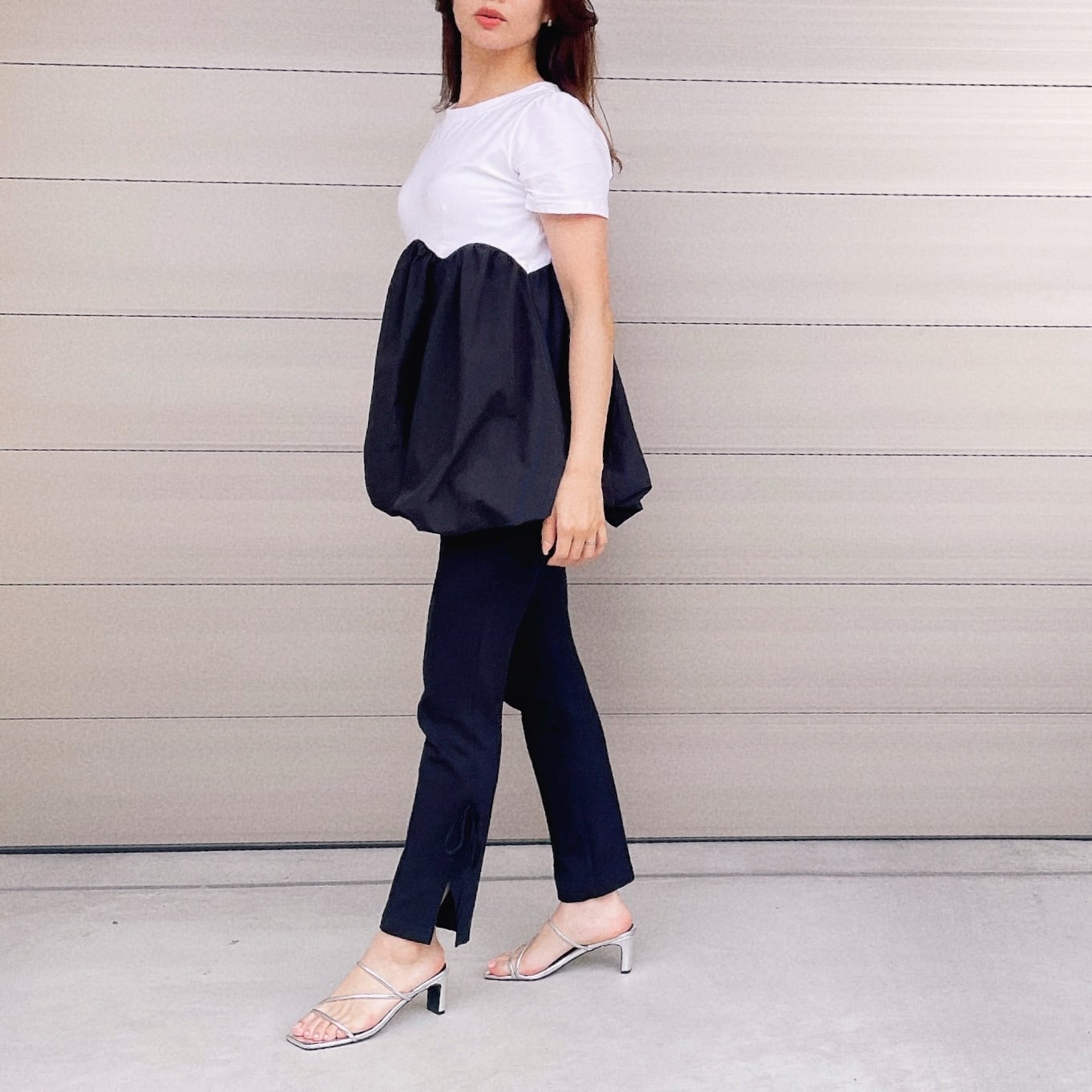 【再入荷】【即納】【April 1st Original】Tulip balloon top ホワイト×ブラック【AP003】