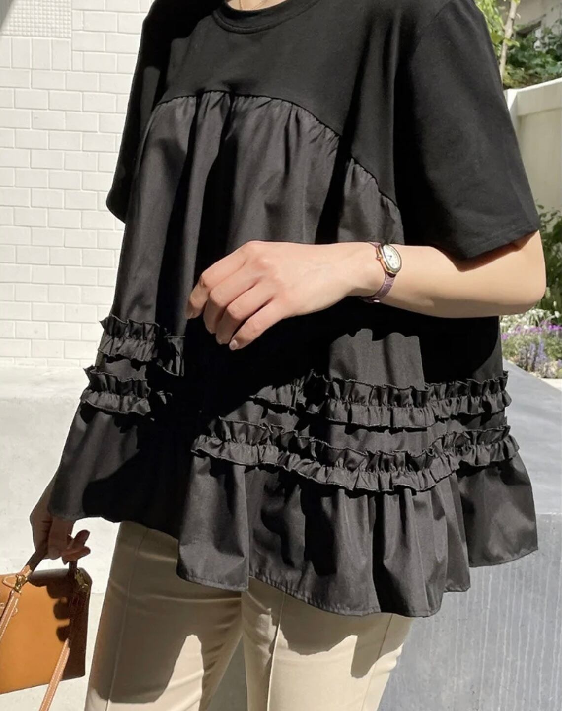 着丈69㎝ 肩幅45㎝ 袖丈23㎝ 胸囲120㎝ 裾幅87㎝