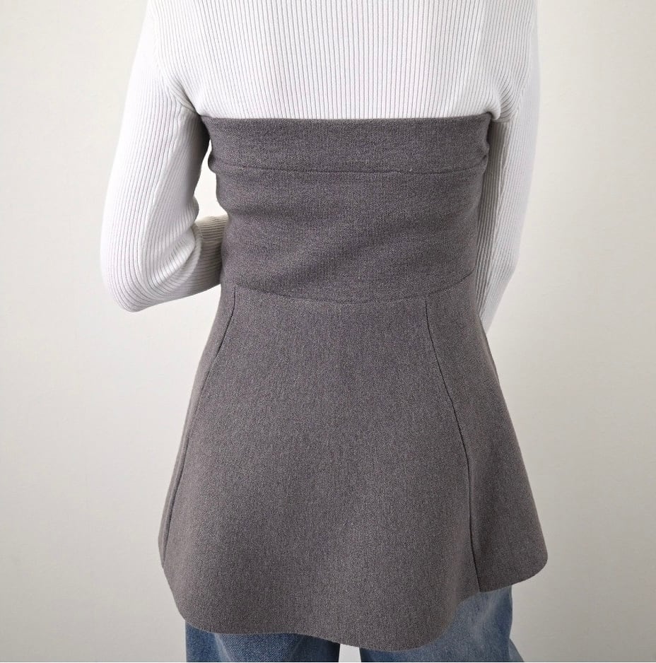 ニット素材で伸縮性があり、胸元のゴムも太めで安心感があります。