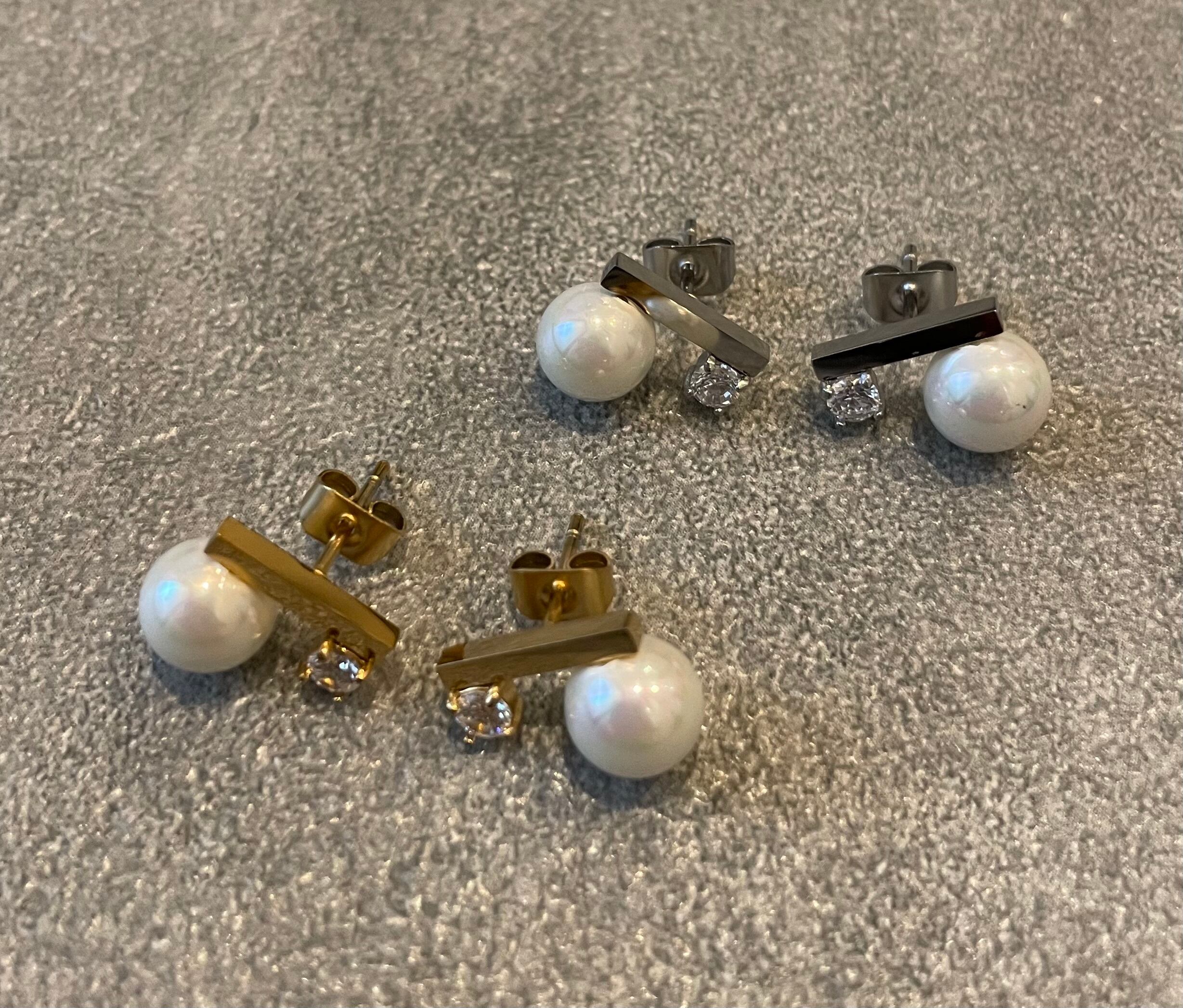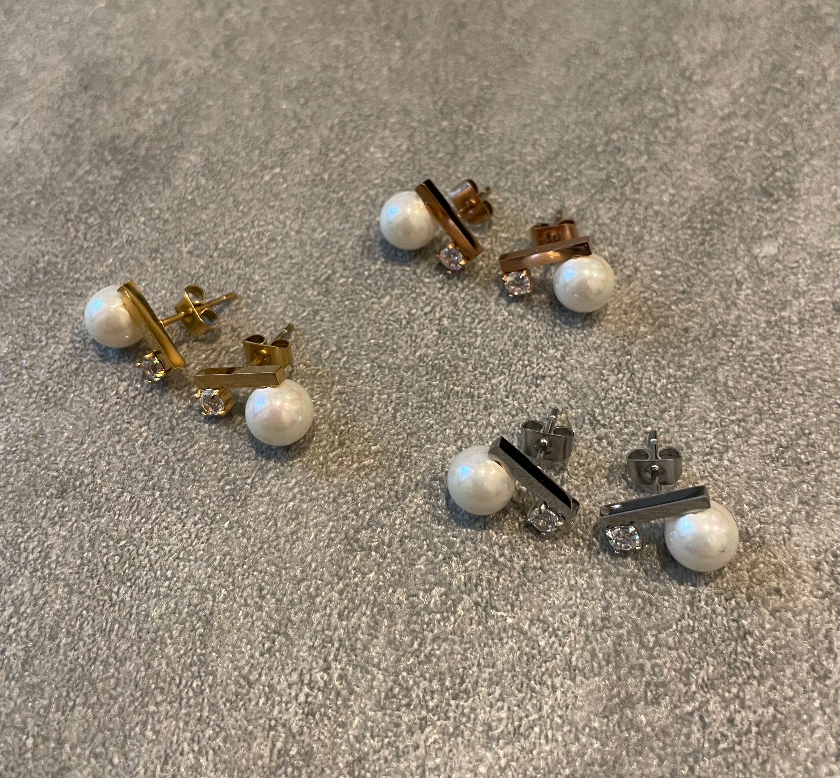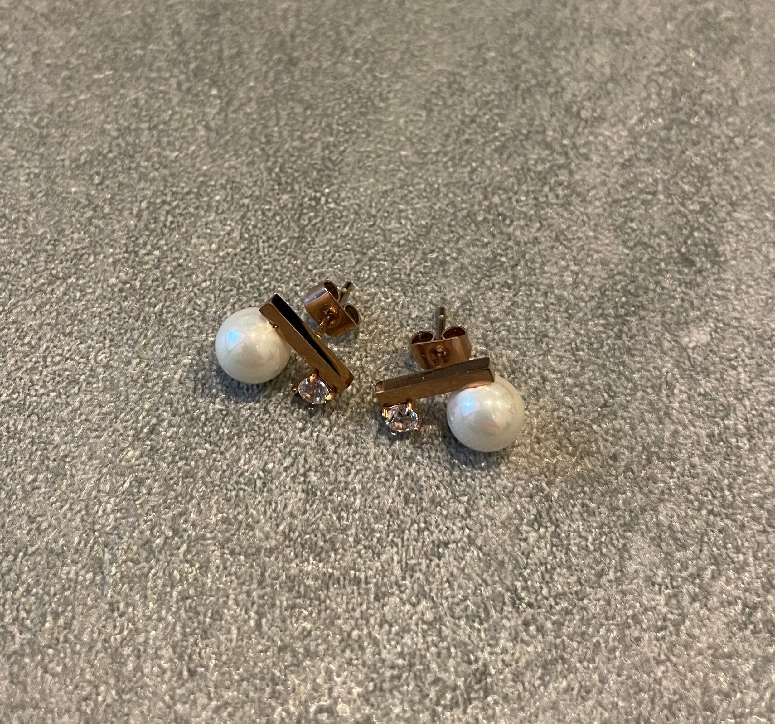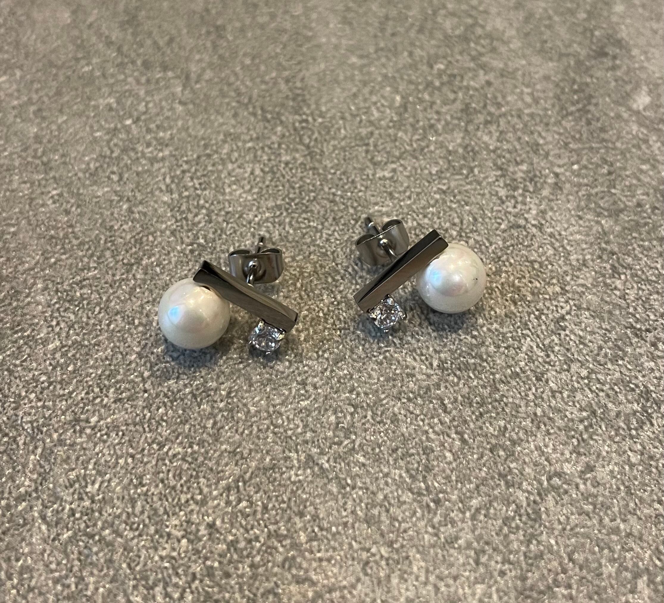 パールとビジュー、バーの組み合わせが可愛いピアスです。