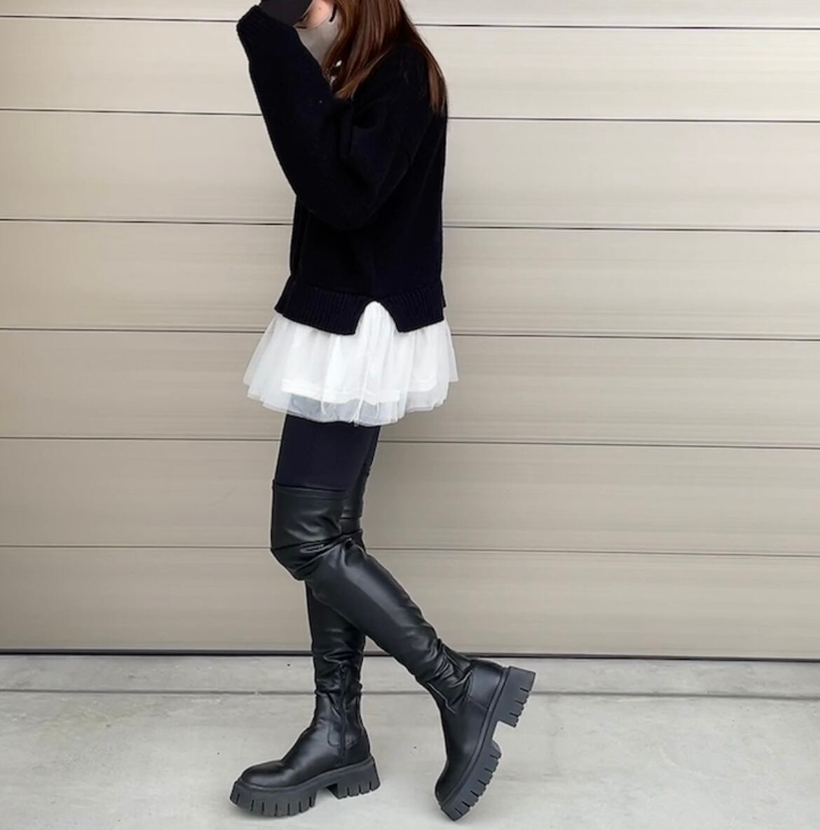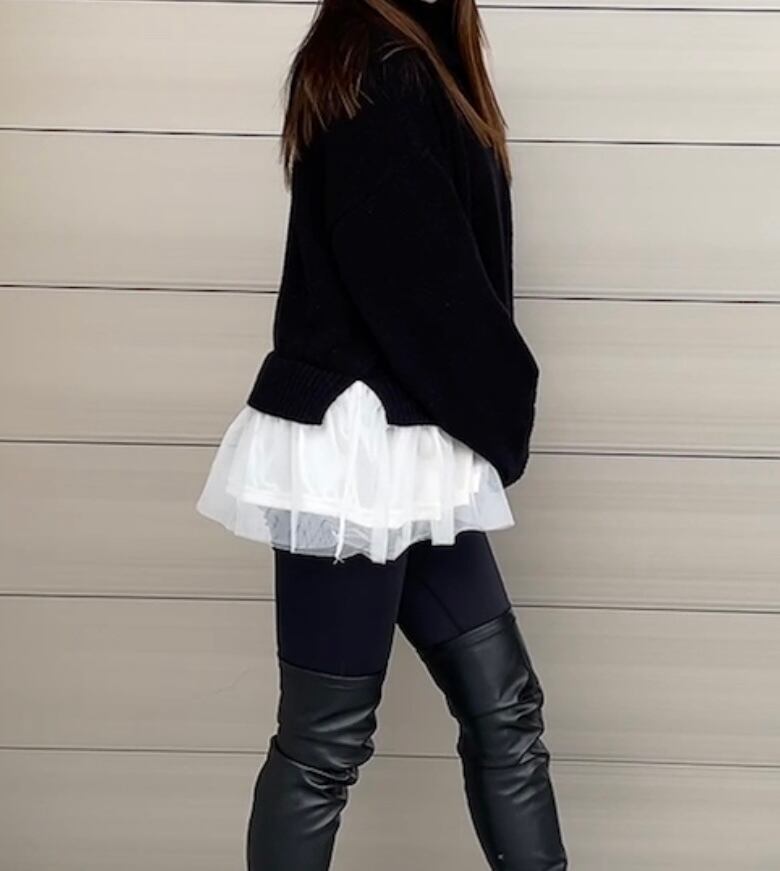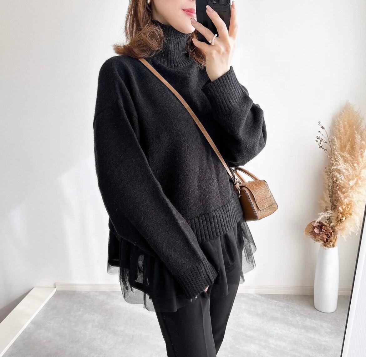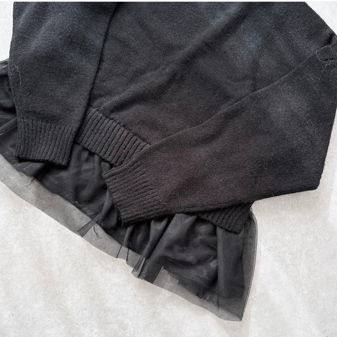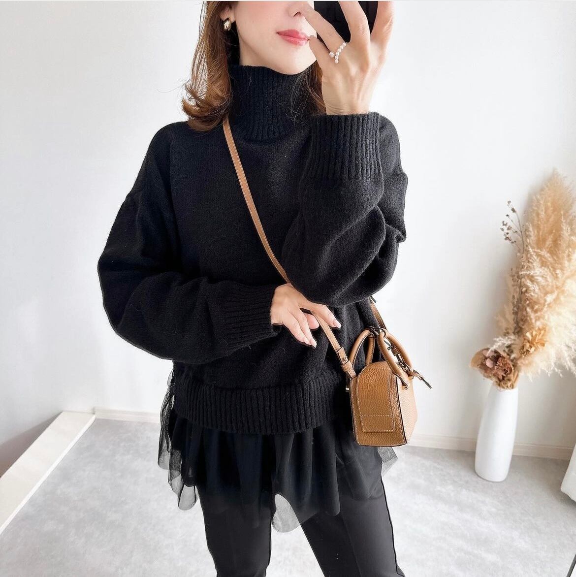 裾部分にトレンドのチュールがふんわりドッキングされた可愛いニットです。