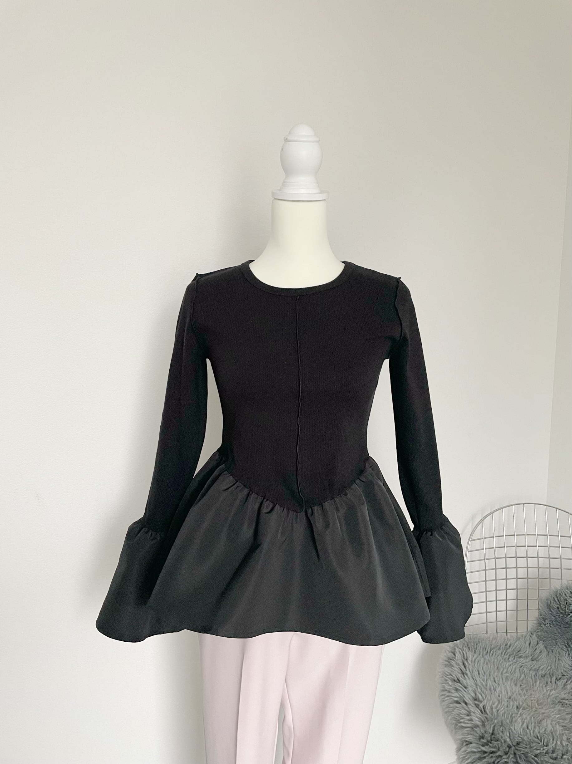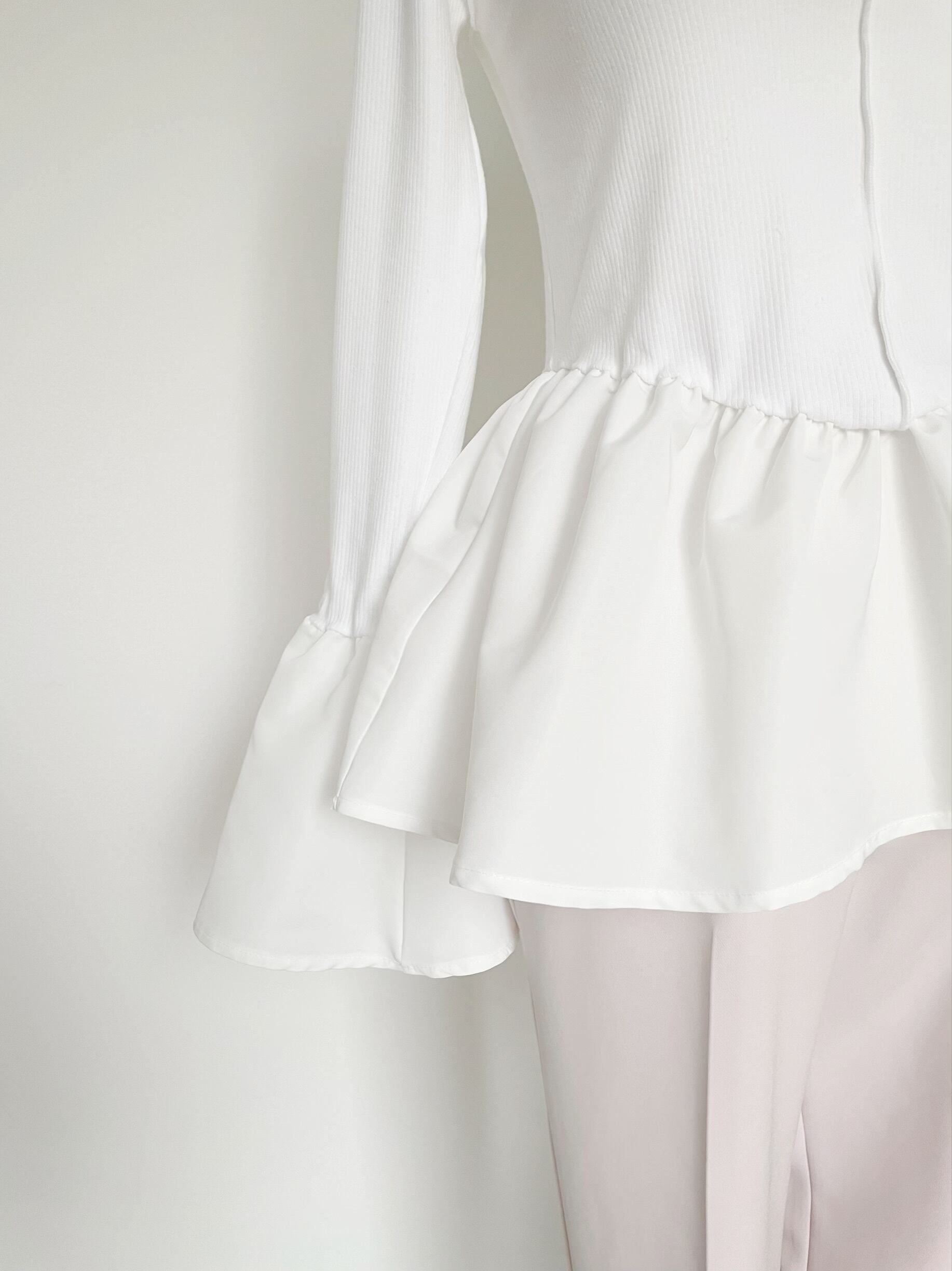 【新色追加】【即納】Bell sleeve rib docking top【ZN23122205】