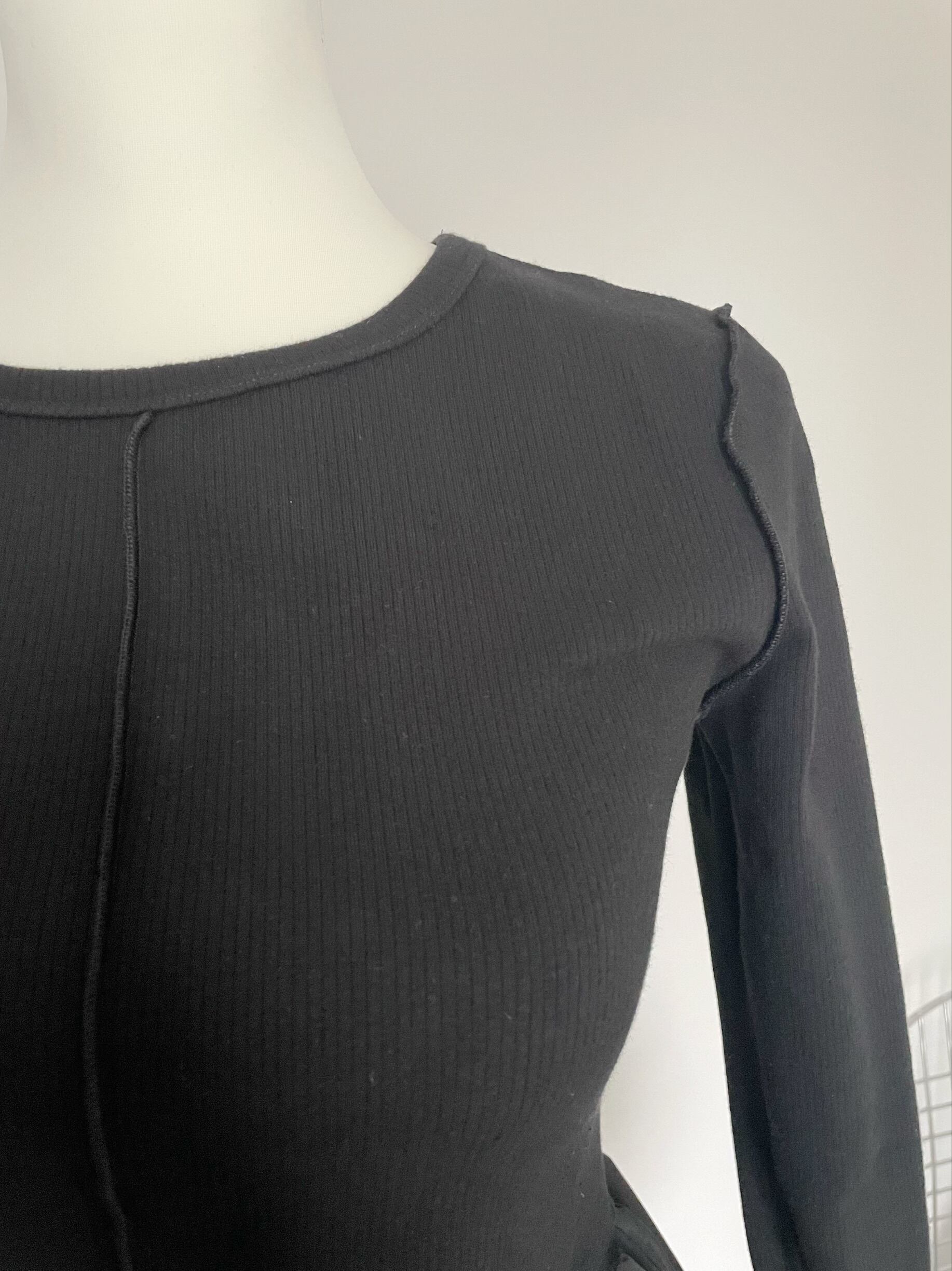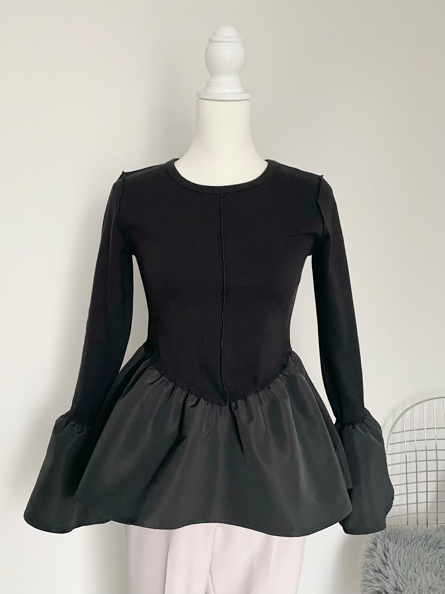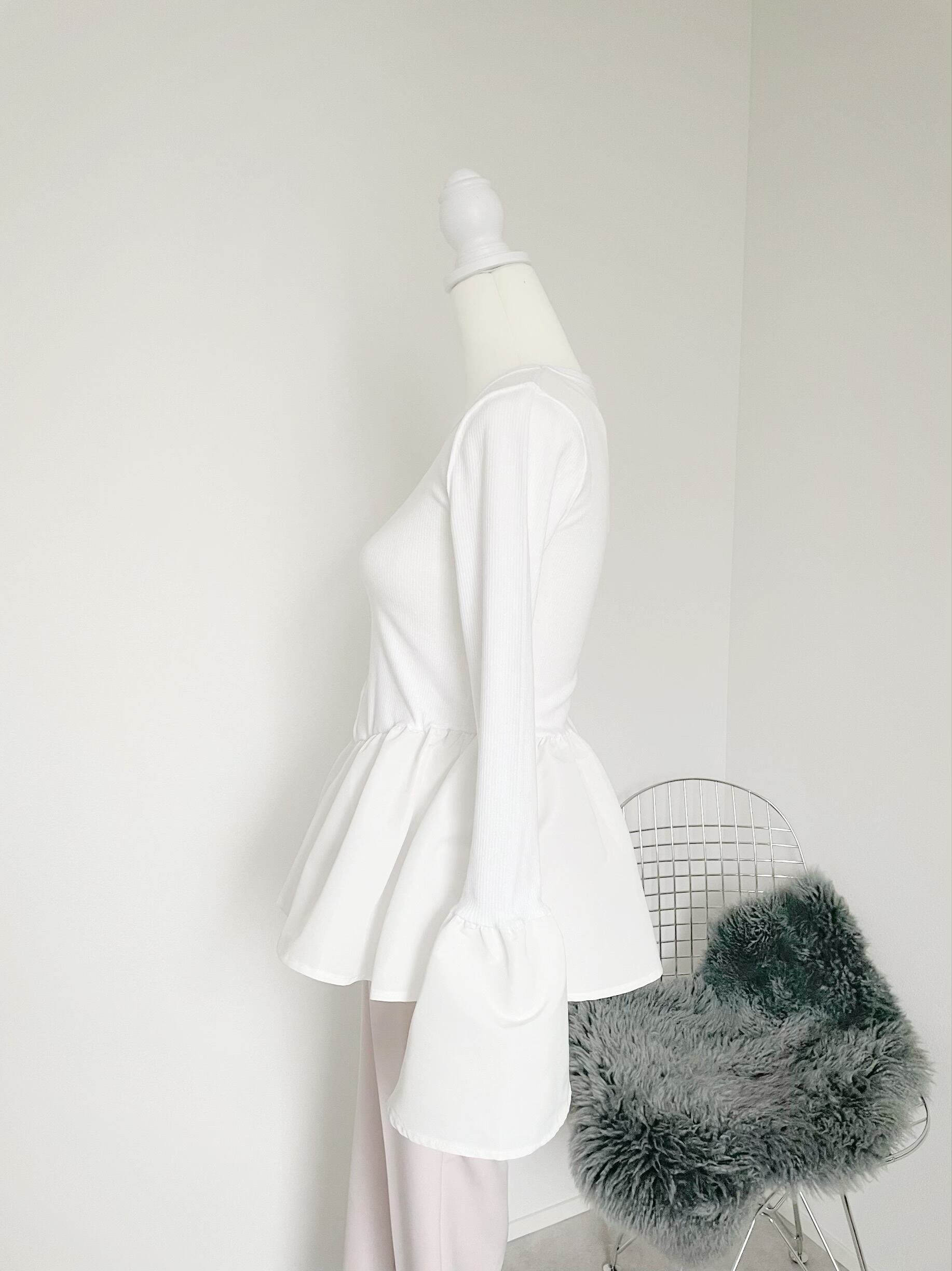袖口に向かって広がったベルスリーブが上品なリブトップスです。