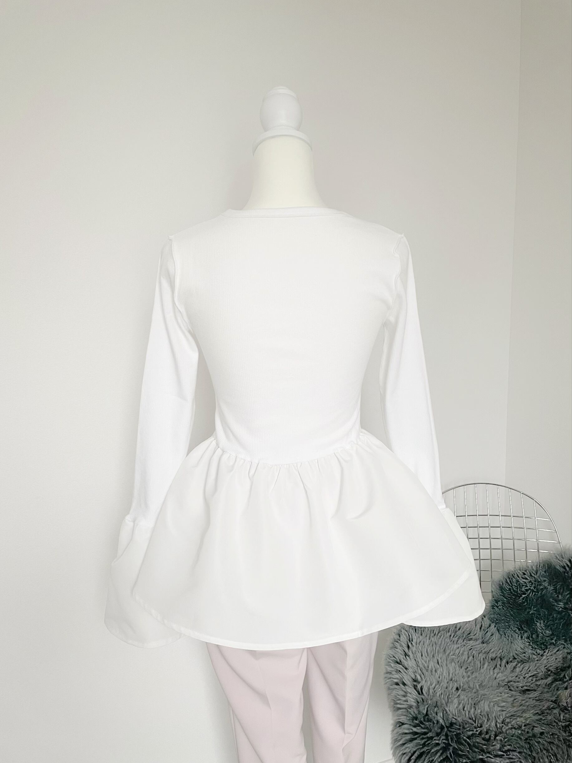 袖口と裾部分が異素材で切り替えになっており、カジュアルとエレガントのミックスがおしゃれな一枚。