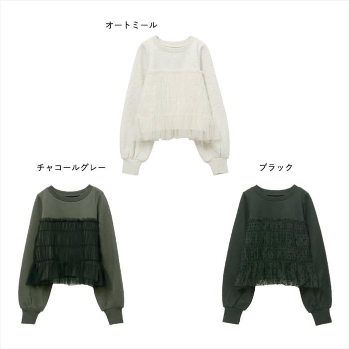 チュールがスウェットトップスにドッキングされたデイリー使いにぴったりのトップスです。