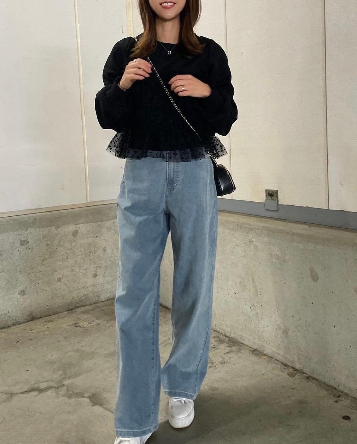 コンパクトな丈感で様々なボトムスに合わせられ、チュールのふんわり感で気になる腰回りもカバーしながら細見え効果を実感出来ます。