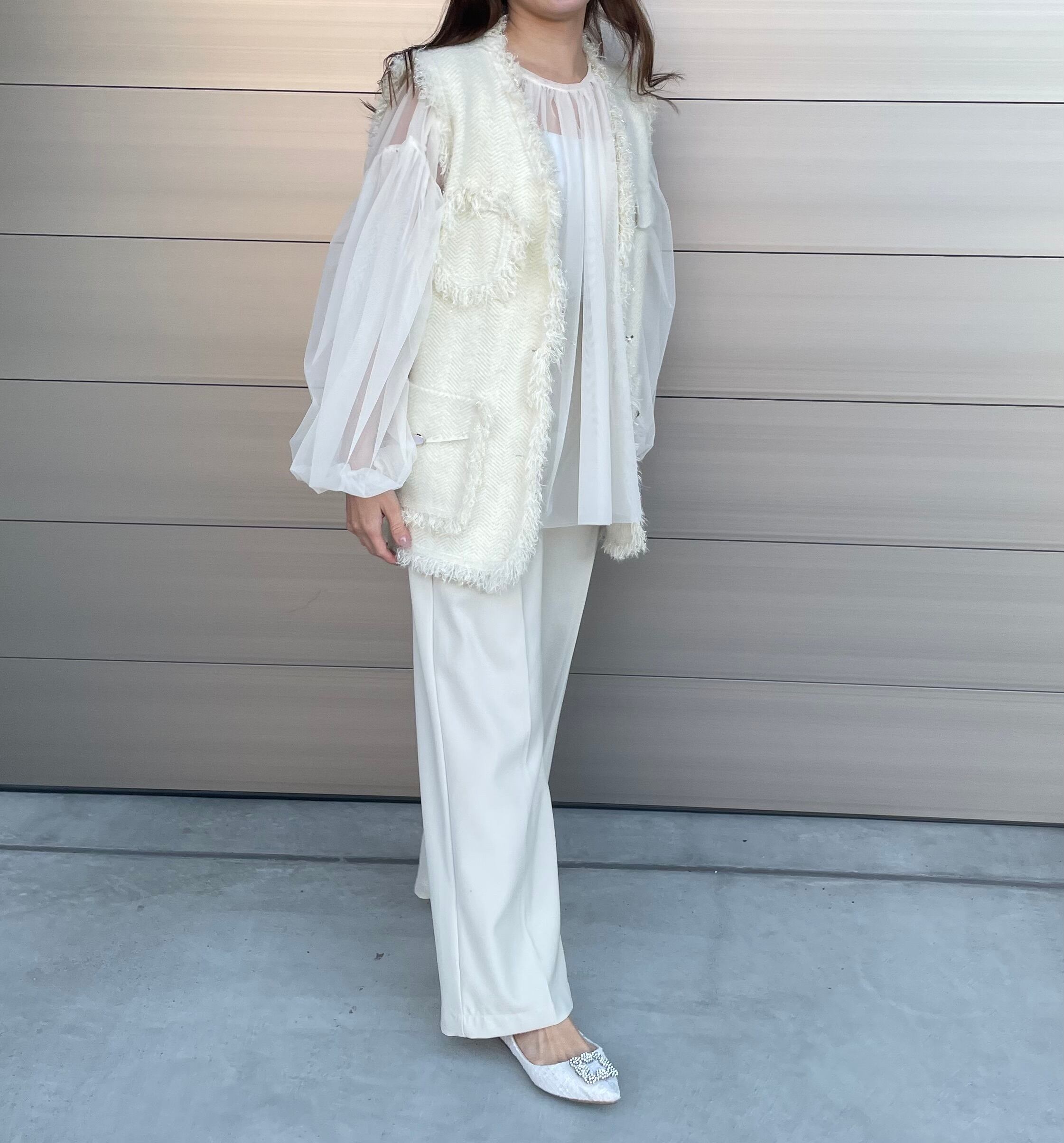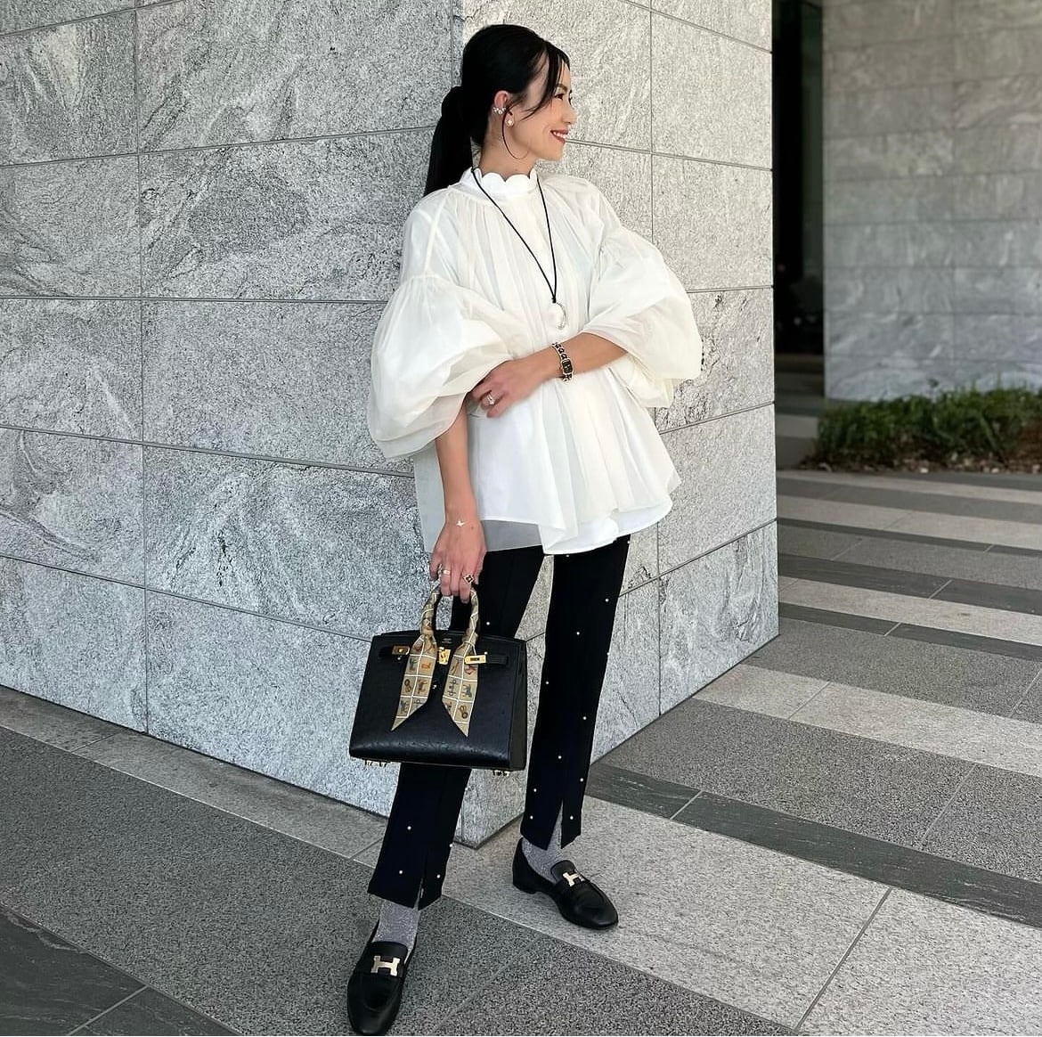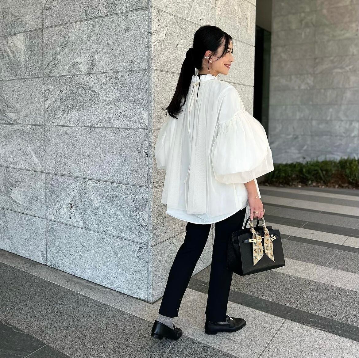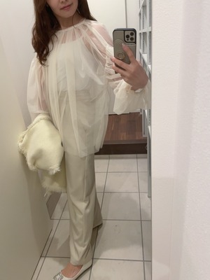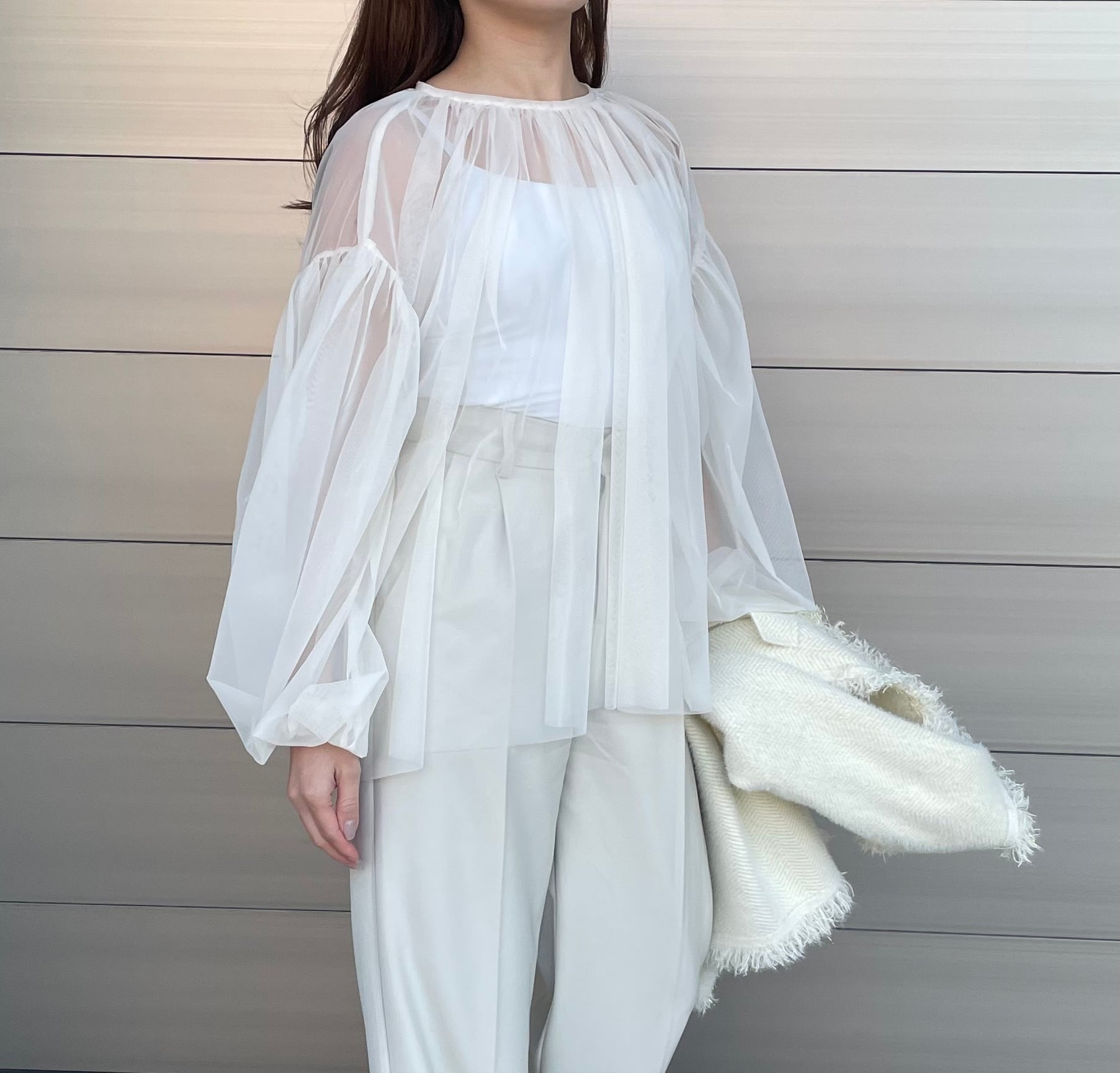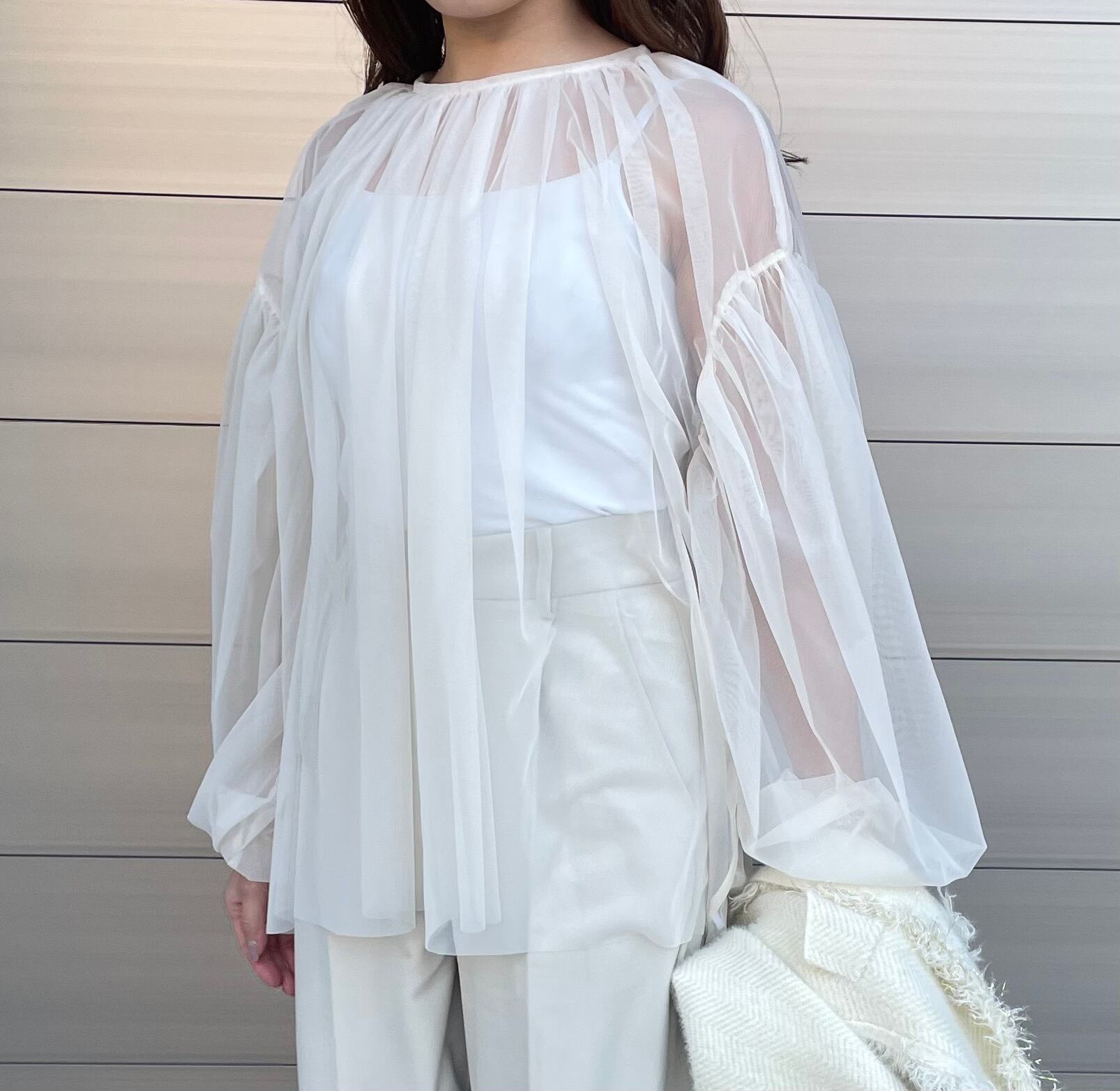 チュールのシアー感が今年らしいボリュームたっぷりのブラウスです。