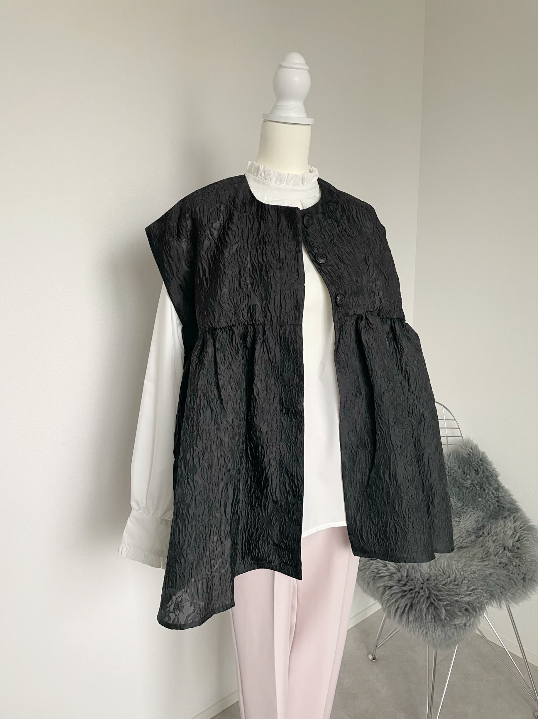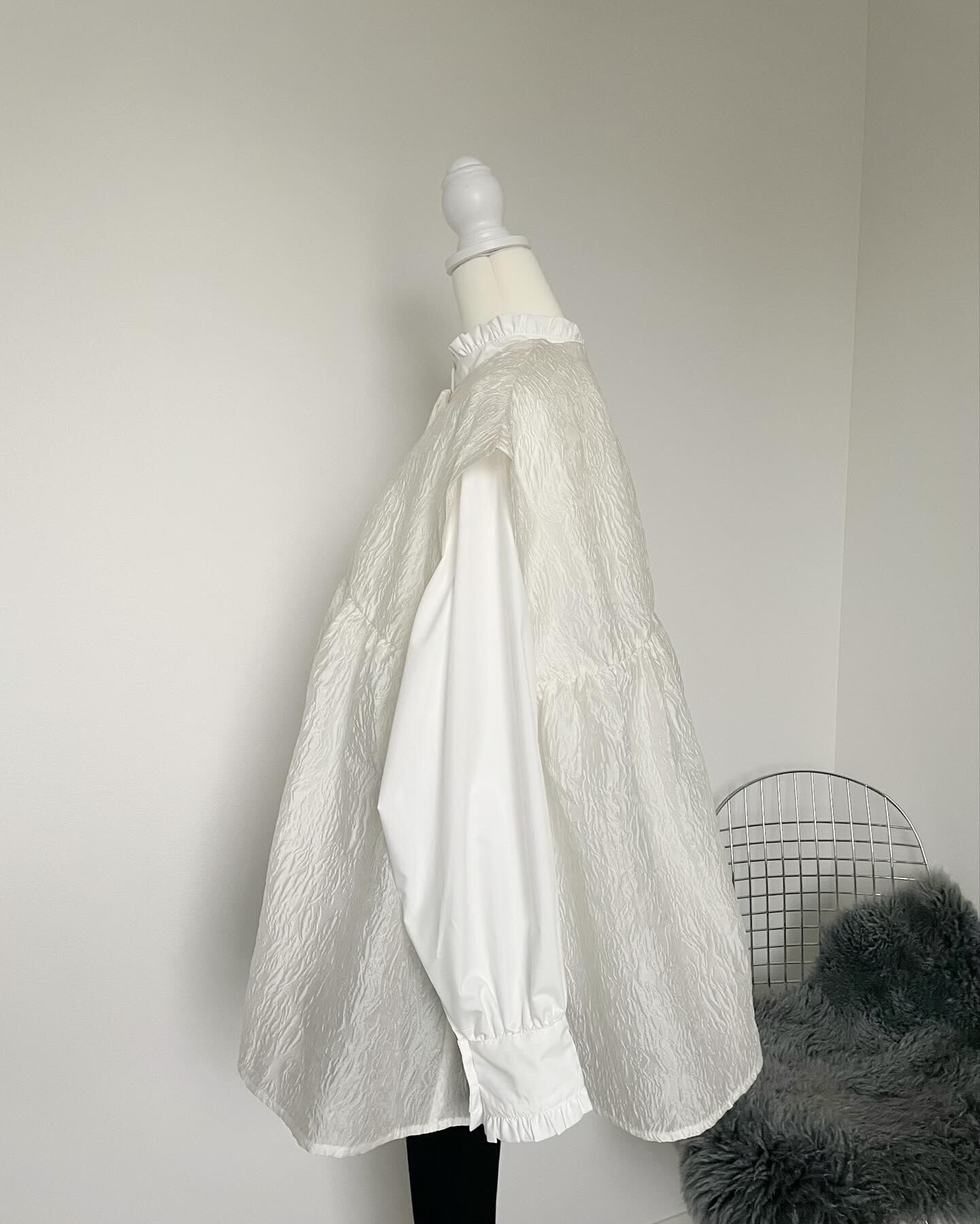 肩より少し下まである大きめのアームホールのフレンチスリーブですっきり見せてくれます。